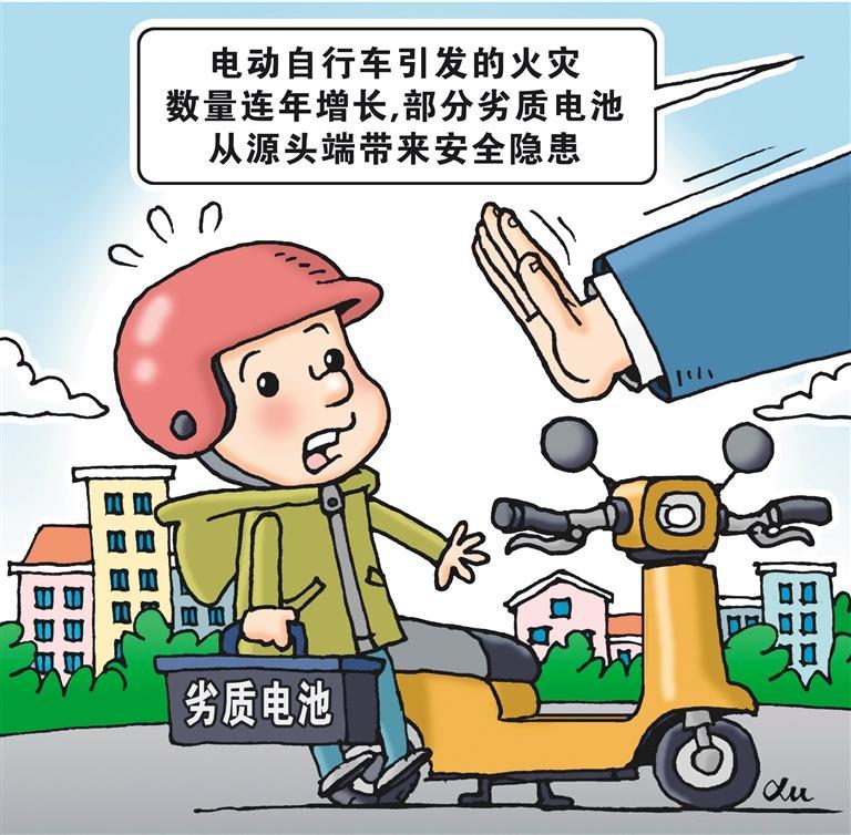 国家消防救援局近日发布数据显示,2023年共接报电动自行车火灾2.1万起,电池单体故障等问题是导致电动自行车火灾的重要原因。近年来,锂电池替代铅酸电池成为大势所趋,而其中部分劣质锂电池流入电动自行车市场,从源头端带来了安全隐患。为此,全国多地监管部门纷纷开展电动自行车电池产品质量安全专项整治行动,重点整治废旧电池组装以旧充新、无厂名厂址、无执行标准等问题。接下来,应多方合力加强源头治理,建立健全科学规范的动力电池回收政策,按照谁生产、谁负责的原则,完善电动自行车电池追溯体系,推动建立电动自行车产品全链条、全生命周期管理体系,利用数字化平台实现多部门协同监管,为车辆使用提供安全保障。(时 锋)
