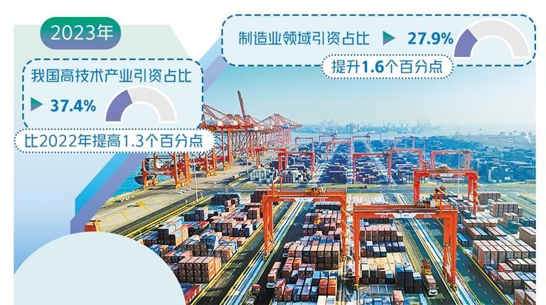 改革开放以来,中国实际利用外资持续增加,已成为全球跨国公司重要的投资目的地。单纯从数字上看,2023年中国吸引外资规模出现了一定程度波动,但中国利用外资的结构持续优化。其中,高技术产业引资占比达37.4%,比2022年提高了1.3个百分点;制造业领域引资占比达27.9%,提升了1.6个百分点。