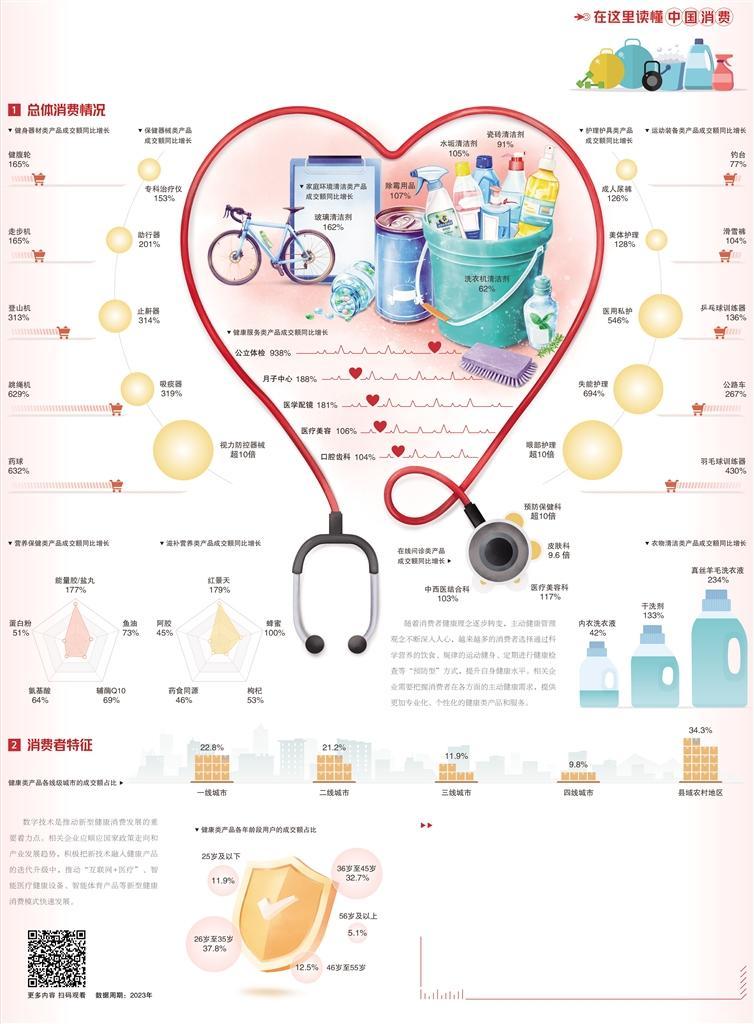 在医疗健康消费上,诊疗家庭化、线上化渐成趋势。一方面,小型健康设备能够满足常态化家庭健康管理需求,视力防控器械、止鼾器、专科治疗仪等保健器械,眼部护理、失能护理、美体护理等护理护具产品受到广泛欢迎。另一方面,健康咨询、在线问诊等“互联网+”健康管理服务让消费者就医更为便捷。
