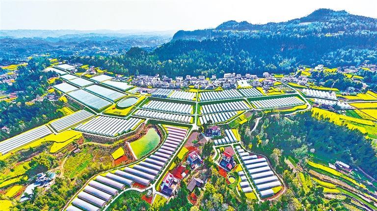 位于四川省巴中市恩阳区双胜镇的芦笋产业示范园,芦笋大棚与民居、油菜花、青山相映成趣。近年来,当地实施荒山荒坡和低产田综合改造,实现农业增效、农民增收。程 聪摄(中经视觉)