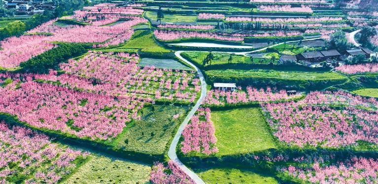 3月25日,位于贵州省黔东南苗族侗族自治州三穗县八弓镇的千亩桃花竞相绽放。