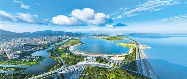 碧海蓝天,白鹭成群。梅山湾美景吸引了很多游客前往打卡。梅山湾综合整治工程自2016年实施以来,已修复砂质岸线2252米,建成32.4公顷人工沙滩,构建了21.5公顷海洋生态缓冲带,形成了20.8公顷湿地。