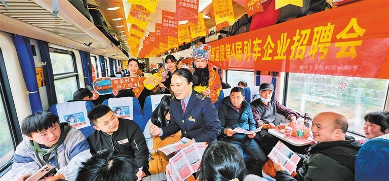 ⑤在广州开往宁波的K210次列车上,杭州客运段邀请部分企业在列车上进行现场招聘,让有需求的旅客“下车门”就能“进厂门”。