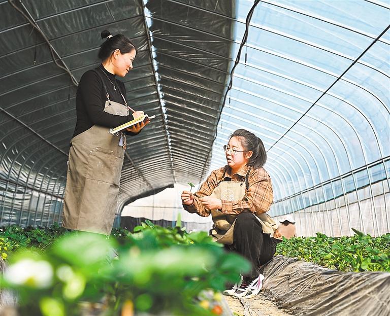 ⑦河南省栾川县石庙镇龙潭村沃地农场,返乡创业青年在观察草莓生长情况。近年来,越来越多的年轻人改变就业观念,选择返乡创业,为乡村发展注入新活力。张光辉摄(中经视觉)