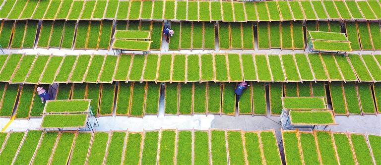 ▼员工在福建福鼎市前岐镇小岳村晾晒白茶。福鼎是中国白茶之乡,茶产业是当地乡村全面振兴的支柱产业。王旺旺摄(中经视觉)