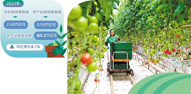 殷浩栋认为,农村电商产业已成为乡村数字经济发展引擎,在推动农产品上行、激活乡村产业方面发挥着不可替代的作用。2023年,农村和农产品网络零售额分别达2.49万亿元和0.59万亿元;农产品物流总额再创新高,超过5.3万亿元,同比增长4.1%。