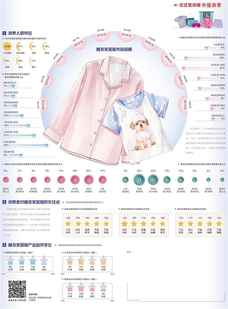 随着“宅经济”快速发展,睡衣家居服不再局限于睡眠场景下使用,而是成为居家穿搭的重要选择,受到越来越多消费者的关注。