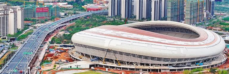 3月30日,江西省赣州市全民健身中心一期项目施工现场,工人正在安装金属屋面蜂窝铝板。该项目建成后,不仅能承接大型体育赛事活动,还将满足业余训练、群众健身、文化娱乐演出等需求,为当地发展注入新活力。朱海鹏摄(中经视觉)