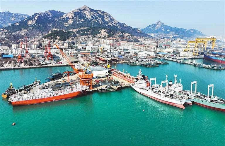 4月1日,山东省荣成市石岛管理区修造船基地一造船企业船坞正加紧建造各类船舶。近年来,当地大力培育发展修造船产业,今年一季度,荣成市修造船企业出口船舶货值4.9亿元,同比增长33.6%。王福东摄(中经视觉)