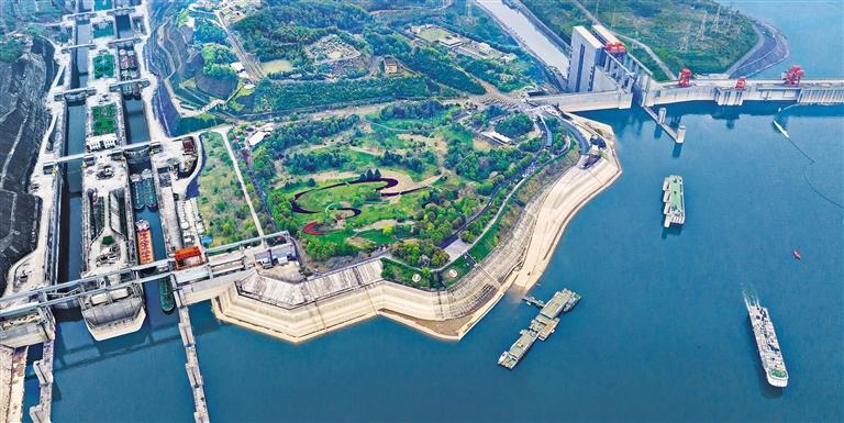 4月4日,船舶有序通过三峡双线五级船闸和三峡升船机。据中国三峡集团消息,三峡船闸一季度货运量超3000万吨,接近通航初期2004年年度货运总量。郑家裕摄(中经视觉)