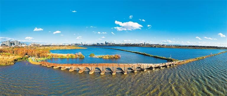 ◀3月17日,云南省昆明市滇池草海湿地碧水荡漾,满目生机。昆明市共建成以湿地为主的滇池环湖生态带6.29万亩。