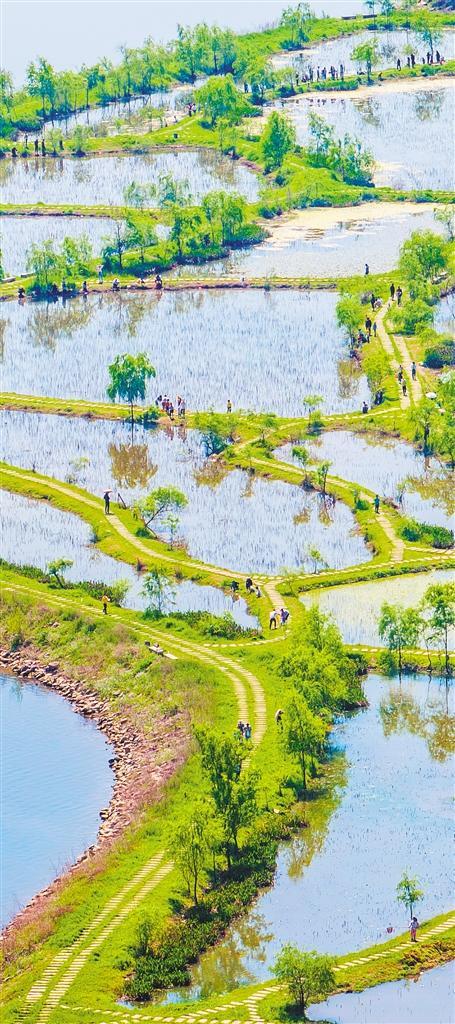 ▶3月31日,重庆市开州区汉丰湖国家湿地公园,绿意盎然,生机勃勃。