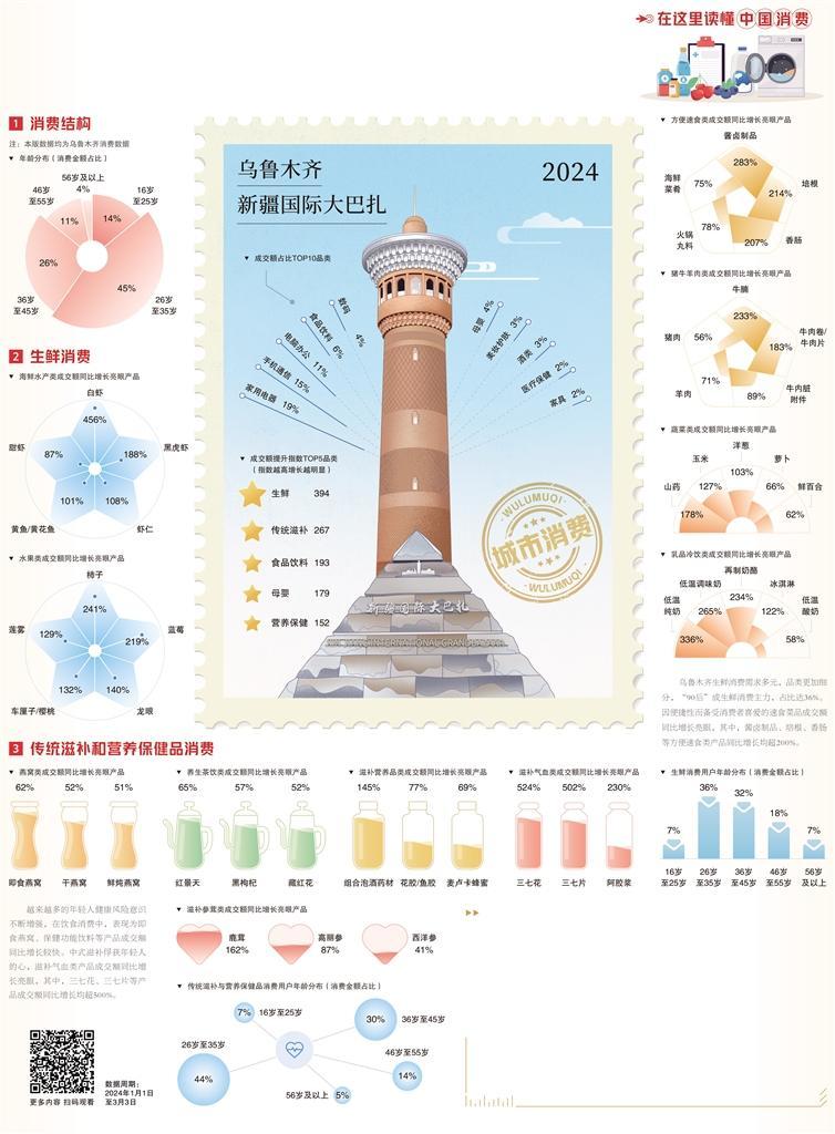 观察、梳理和分析当地消费数据,可以看出,乌鲁木齐消费市场持续升温,特别是春节期间,消费潜能得到充分释放,呈现饮食消费升级等新趋势。