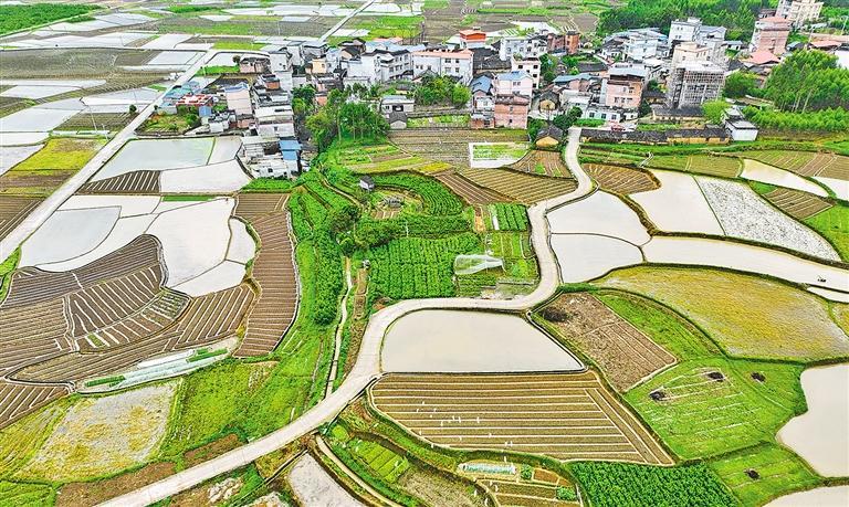 广西梧州市蒙山县西河镇古排村,纵横交错的机耕路、乡村道路、灌溉水渠与农田、村居、成群的白鹭等构成了一幅美丽和谐的生态乡村图景。林志清摄(中经视觉)