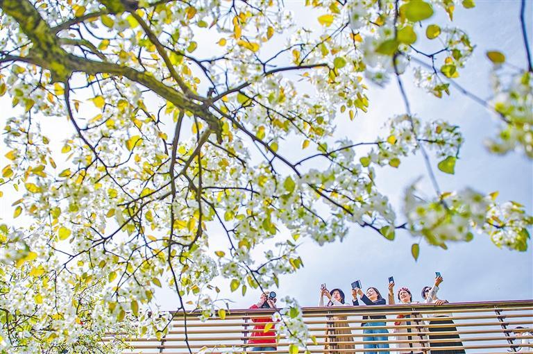 ▶4月8日,江苏省宿迁市三台山国家森林公园梨兰会景区,梨花怒放,美不胜收。
