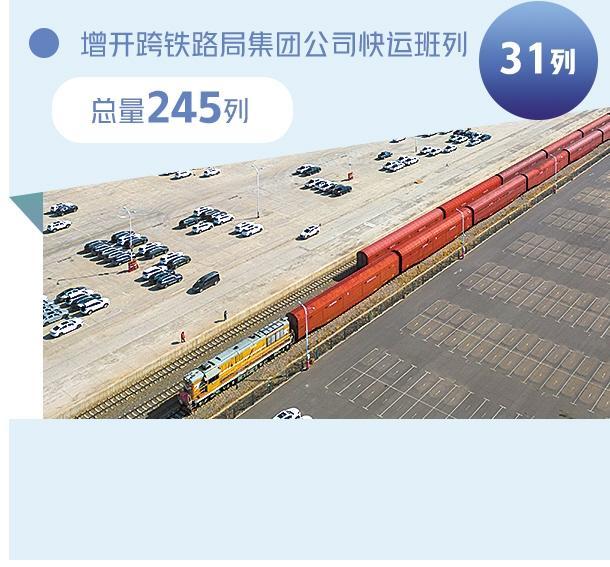 增加城际和多式联运班列产品供给。为加快构建全国快货物流圈,增开跨铁路局集团公司的快运班列31列,总量达到245列。首次在北京(大红门)至广州(官窑)间开行时速120公里多式联运班列,主要运送电商快递货物,将大幅提高货物运输效率。