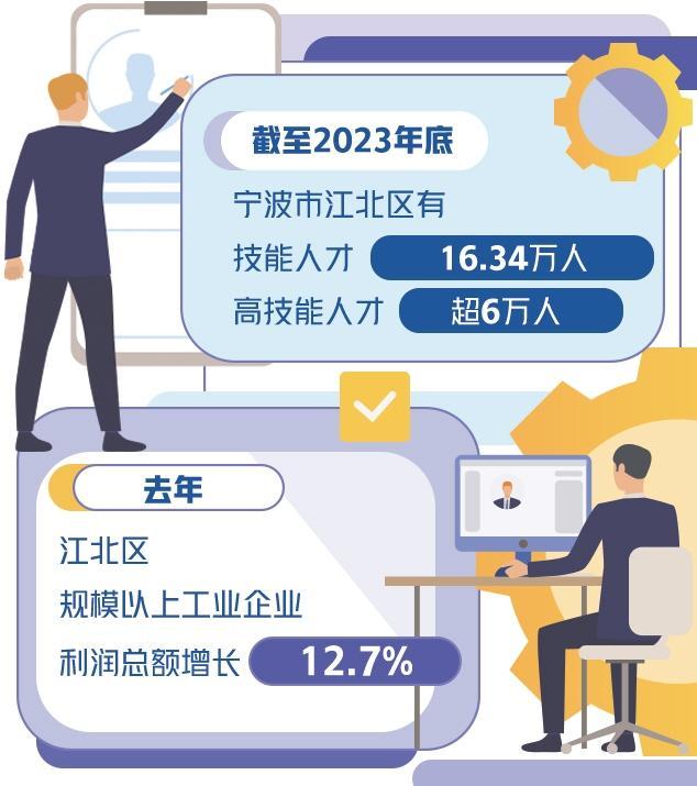 让技能人才破局“出圈”,需要更多“阳光雨露”。去年,江北以宁波唯一的市区共建技能人才高质量发展示范区为契机,推出支持技能人才发展“江北13条”,打好育才护才敬才“组合拳”。其中,江北将企业是否建立技能大师工作室、培养引进高技能人才数量等技能人才队伍建设情况纳入涉企评价范畴,正向激励、引导形成企业重技授技、员工崇技学技的良好氛围。