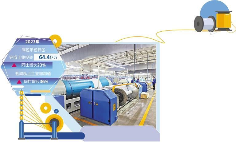阿拉尔经开区是新疆四大综合性纺织服装产业基地之一,目前已注册各类企业2000余家,具备棉纤维、粘胶纤维、聚酯纤维三大纺织原料及全疆染整规模最大、印染品类最全的印染体系。当前,阿拉尔经开区正聚焦纺织服装、绿色化工、食品加工等优势主导产业集群发展,大力培育新材料、高端装备制造、新能源等新兴产业,不断延链补链强链,产业活力显现。去年,该经开区完成工业投资64.4亿元,同比增长23%;规模以上工业增加值同比增长36%。