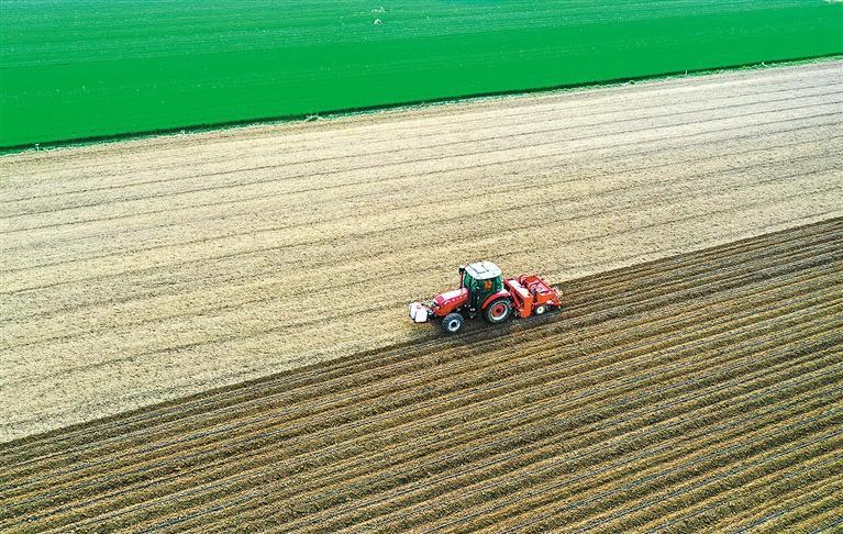 4月11日,安徽省蒙城县小辛集乡聚富种植合作社农民驾驶拖拉机进行春播前的施肥起垄作业。近年来,蒙城县不断推进农机装备现代化,目前,全县主要农作物耕种收综合机械化率达到96.5%以上,农机化已成为推动当地农业现代化的重要力量。胡卫国摄(中经视觉)