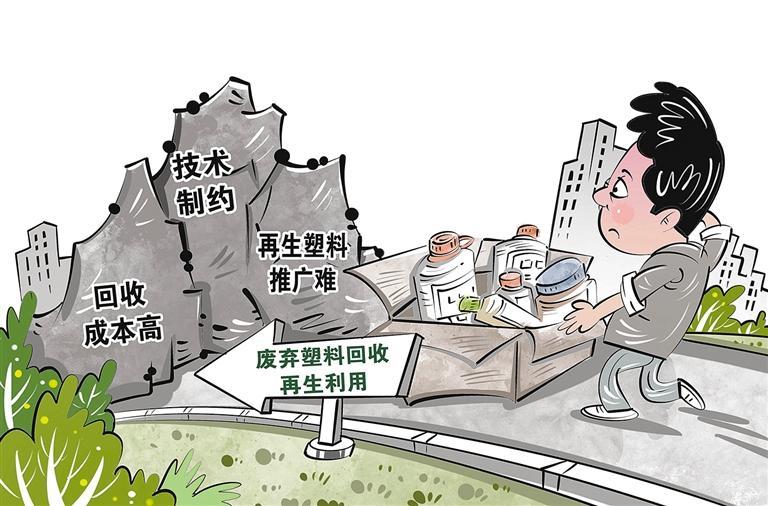 废弃塑料,是日常生活中常见的垃圾。今年《政府工作报告》提出,强化塑料污染治理。数据显示,我国废弃塑料回收处置只占少部分,一大半只是简单掩埋或焚烧,对生态环境造成污染。提高废弃塑料再利用率,亟待解决回收成本高、技术制约、再生塑料推广难等一系列现实问题。就此,可探索制定再生塑料使用比例相关标准,引导社会使用再生塑料产品,打造标准体系、认证体系、检测体系等绿色再生塑料规范体系。加大宣传再生塑料应用,培养废弃塑料回收的社会共识,提高社会使用意识和意愿。进一步研发应用塑料回收利用相关技术,应特别注意能将废弃塑料回归到分子层级进行重新组织的化学回收。(时 锋)