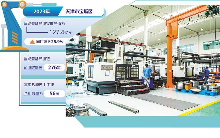 从自动化制药高速充填机到智能钢化玻璃生产线,再到各类功能性机器人……宝坻智能装备产品正吸引市场更多目光。张宏栋介绍,2023年,宝坻区88家智能装备子产业链企业完成产值55.9亿元,同比增长48.2%;96家电气子产业链企业2023年完成产值41亿元,同比增长24%,涵盖风电设备、电气控制设备、电缆、电子材料等多个领域。