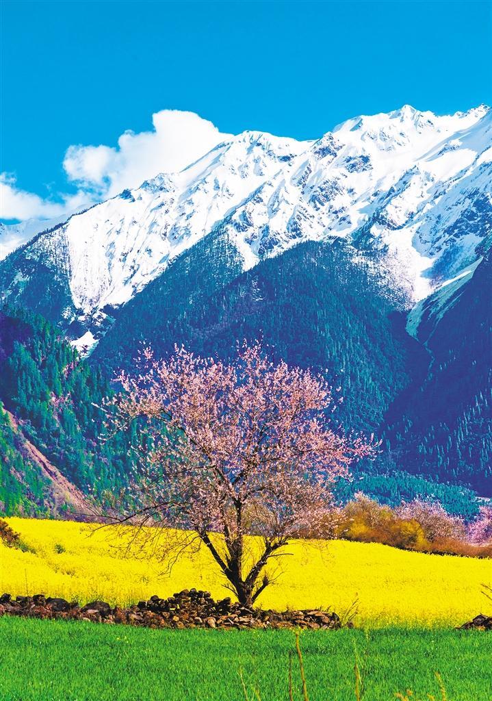 每年3月底,西藏林芝桃花绽放。沿着雅鲁藏布江和尼洋河流域,雪山映照下,漫山遍野的野生桃花次第开放,斗艳争芳。目前,林芝野生桃树的数量在300万株以上,观赏期近2个月。截至今年,林芝已举办了21届桃花旅游文化节。林芝桃花节已成为林芝乃至西藏旅游的“烫金名片”。