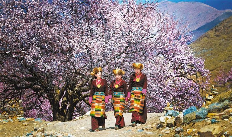 不仅是林芝,拉萨、山南、日喀则、那曲等市也有成片的野生桃林。3月底4月初,各地桃花相继绽放,赏花打卡的游人络绎不绝。各地纷纷利用当地桃花资源,举办赏花等文旅活动,掀起了西藏春日赏花旅游热潮,赏花经济在高原散发芬芳。