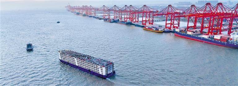 4月19日,江苏省苏州港太仓港区国际集装箱码头,一艘满载新能源汽车的专用船舶驶出港区。随着外贸加快复苏、进出口持续增长,江苏各大港口作业日趋繁忙。今年一季度,苏州港累计完成集装箱吞吐量240.9万标箱,同比增长13%。
