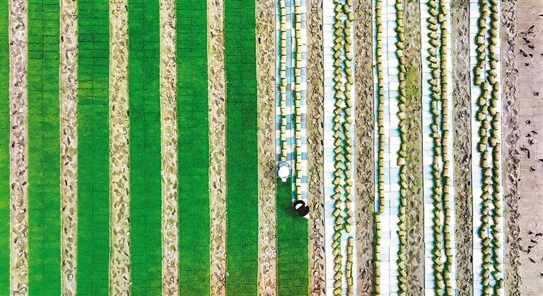 4月21日,湖南省常德市澧县小渡口镇夹堤口村,村民在集中育秧田使用早稻机插秧苗,确保移栽不误农时。柏依朴摄(中经视觉)