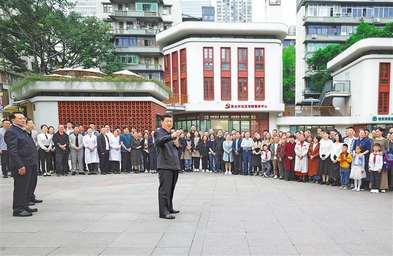 九龙坡区谢家湾街道民主村社区是一个老小区,2022年初启动更新改造项目并纳入全国有关试点。习近平来到这里,察看小区改造和便民服务情况,听取提升基层治理效能、为基层减负情况介绍。他还走进社区食堂,同正在就餐的群众亲切交流,鼓励社区食堂实现可持续发展。习近平指出,老旧小区改造是城市更新的一个重点,也是一项民生工程,既要保留历史记忆和特色风貌,又要解决居民关切的实际问题。要总结推广这方面的成功经验,更好惠及广大社区居民。城市治理的很多工作要靠基层党组织这个战斗堡垒和社区这个平台去落实,要厘清城市社区职责事项,继续推动资源下沉、完善服务设施,强化网格化管理、信息化支撑,提高社区精细化治理、精准化服务水平。