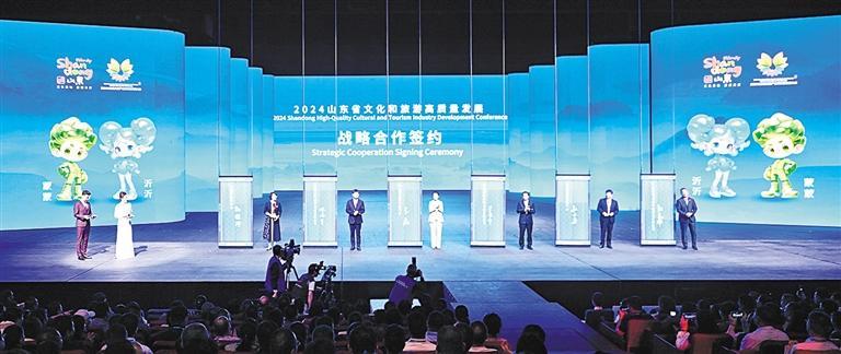 4月25日下午,2024山东省文旅产业高质量发展大会在临沂开幕。各界嘉宾围绕“相约亲情沂蒙 共享好客山东”主题,畅叙友情、畅谈合作,共谋文旅产业高质量发展。为促进入境旅游健康、有序发展,提升齐鲁文化国际传播力影响力,扎实推进全省高水平对外开放,大会上,《关于加快入境旅游高质量发展的若干措施》政策正式发布。