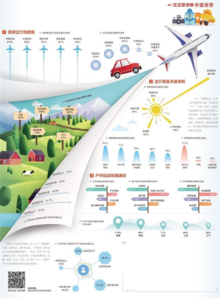 “五一”假期到了,人们的旅游出行需求愈发旺盛。数据显示,这个假期旅游出行热度持续走高,旅行服务、户外产品、运动装备等成为消费热点,飘红的假日经济展现出国内消费市场的蓬勃活力。
