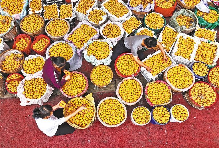 4月29日,四川省眉山市仁寿县文宫镇枇杷集市,果农在整理枇杷。近段时间,当地枇杷喜获丰收,果农们忙着采摘、销售,处处都是丰收景象。潘建勇摄(中经视觉)