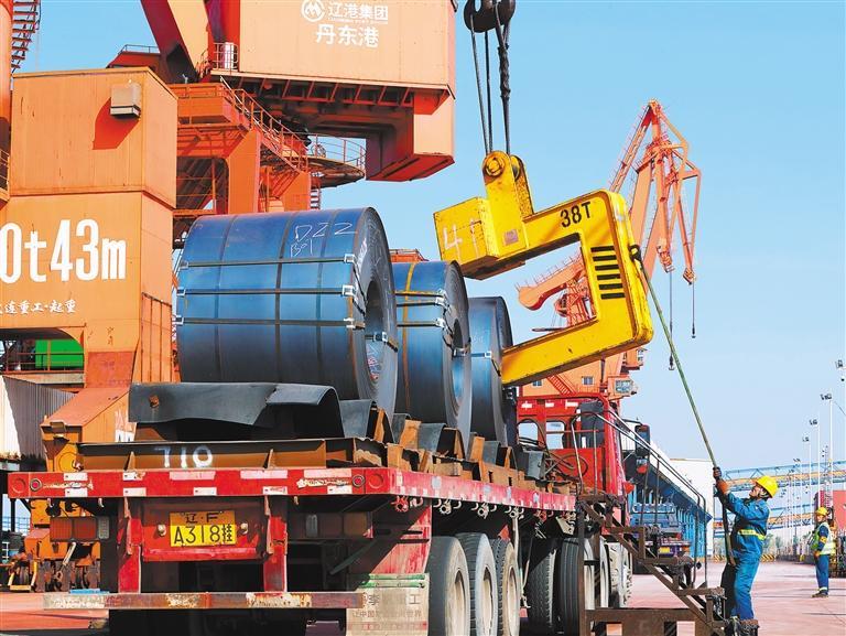 ▲4月30日,辽宁省丹东港口集团有限公司通三码头,员工在装卸作业。该港口采用关港联动新模式,提高作业效率,保障货物通关。周贵平摄(中经视觉)