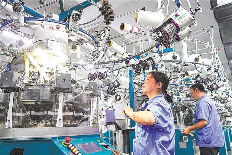 ▶4月30日,位于浙江省湖州市南浔区练市镇的浙江彩蝶实业股份有限公司,员工在忙生产。陆志鹏摄(中经视觉)