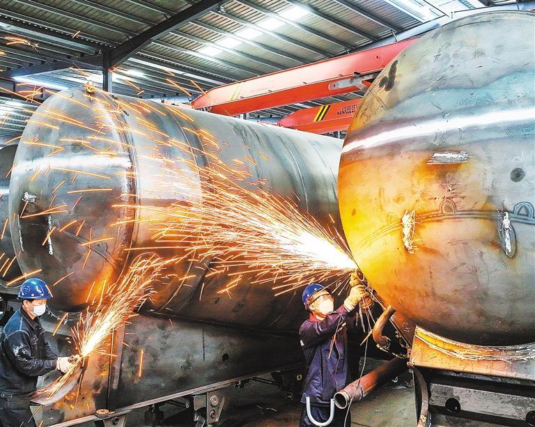 ▼4月30日,河北省临城县光亚专用汽车生产车间,员工开足马力进行焊接作业。