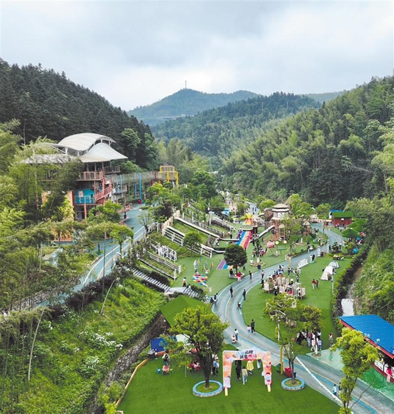◀5月1日,江西省萍乡市湘东区白竺乡和平农场,游客畅游山水,乐享假日时光。
