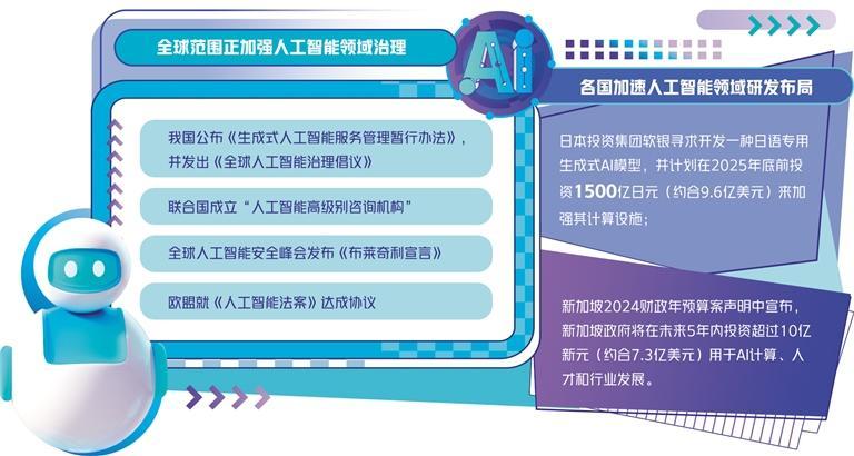 中国信通院政策与经济研究所高级工程师程莹告诉记者,算法治理是在已有成熟业态之后,围绕网络平台展开的相对稳定、清晰、可预期的治理。当下的大模型具有扩展性强、迭代快速、商业模式尚在探索的阶段特性,全球主要经济体共同面临着“边发展边摸索边治理”的重大挑战。在我国,人工智能治理正从原则理念转化为可落地的规则规范。立法层面,既有民法典、个人信息保护法、电子商务法等条款针对深度伪造、大数据杀熟等具体问题的治理,也有在部门规章层面关于算法推荐、深度合成、AIGC领域的要求。伦理层面,在《关于加强科技伦理治理的意见》规范下,进一步推进《科技伦理审查办法(征求意见稿)》落地实施。标准层面,我国发布了《国家新一代人工智能标准体系建设指南》《生成式人工智能服务安全基本要求》等,对人工智能提出了具体落地要求。
