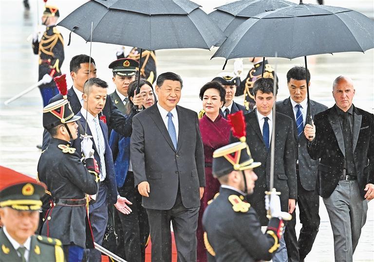 习近平发表书面讲话。习近平指出,我很高兴对法国进行第三次国事访问,同法国人民一道庆祝中法建交60周年。作为东西方文明的重要代表,中国和法国长期以来相互欣赏、相互吸引。60年前,中法两国突破冷战藩篱,建立大使级外交关系。60年来,中法关系始终走在中国同西方国家关系前列。中法关系发展不仅给两国人民带来福祉,也为动荡不安的世界注入了稳定性和正能量。访问期间,我将同马克龙总统就新形势下中法、中欧关系发展,以及当前重大国际和地区问题深入交换意见。我希望通过这次访问,巩固两国传统友谊、增进政治互信、凝聚战略共识、深化各领域交流合作,用历史的火炬照亮前行的路,创造中法关系更加美好未来,为世界和平、稳定、发展作出新的贡献。