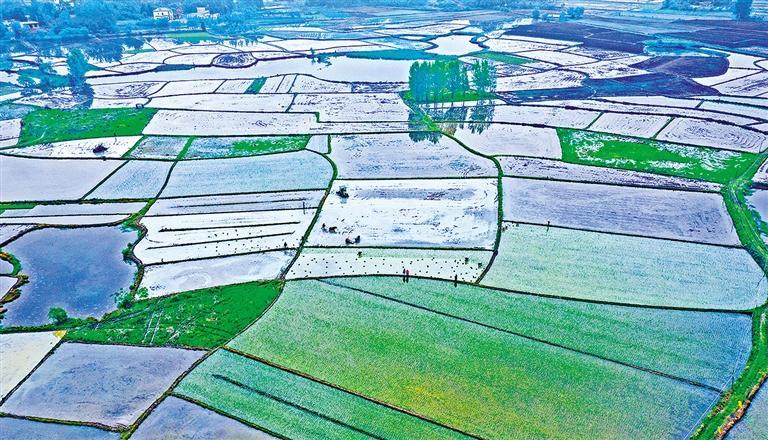 5月5日,在河南省信阳市光山县司马光小镇,升辉合作社组织当地农民抢抓农时,保障今秋丰产丰收。 谢万柏摄(中经视觉)