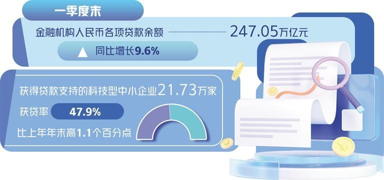 此外,贷款支持科创企业力度较大。一季度末,获得贷款支持的科技型中小企业21.73万家,获贷率47.9%,比上年年末高1.1个百分点。科技型中小企业本外币贷款余额2.7万亿元,同比增长20.4%,比同期各项贷款增速高11.2个百分点。
