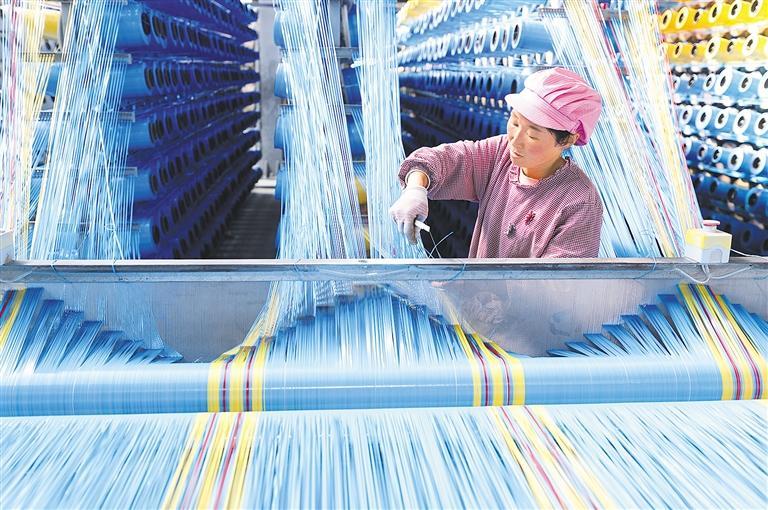5月7日,江苏连云港市赣榆区沙河镇一家纺织出口企业车间里,工人正在加紧赶制订单。今年以来,当地引导外贸企业加快技术创新和新产品研发,提升市场竞争力,海外订单稳定,产销两旺。