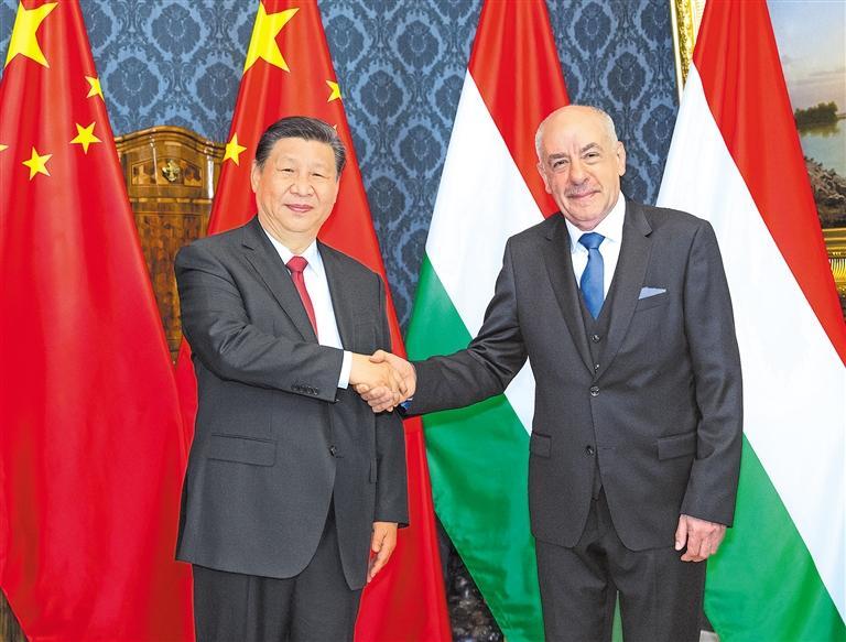 习近平强调,中国正在以中国式现代化全面推进强国建设、民族复兴伟业,这将给世界带来巨大机遇。中方欢迎匈牙利朋友搭乘中国式现代化的发展快车,愿同匈方继续深化政治互信,推动中国式现代化同匈牙利“向东开放”战略更紧密对接,深挖务实合作潜力,持续扩大各领域交流。中方愿同匈方继续引领共建“一带一路”合作和中国—中东欧国家合作正确方向,推动合作走深走实。希望匈方以今年下半年担任欧盟轮值主席国为契机,推动中欧关系平稳健康发展。