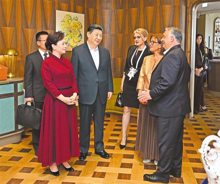本报布达佩斯5月10日讯(记者翟朝辉 陈希蒙)当地时间5月10日中午,国家主席习近平和夫人彭丽媛在布达佩斯应邀出席匈牙利总理欧尔班和夫人举行的饯行活动。