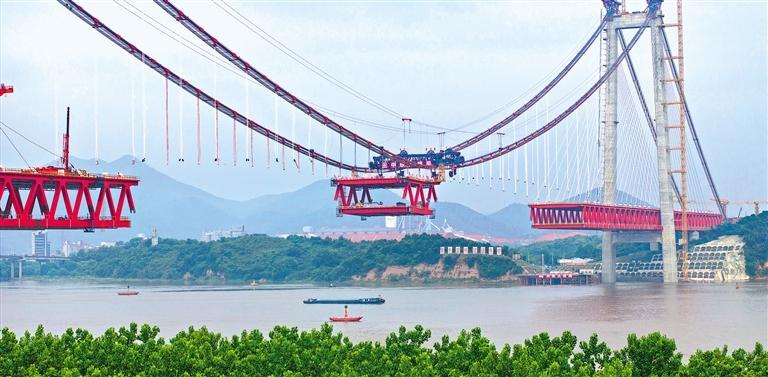 5月9日,在安徽省G3铜陵长江公铁大桥建设现场,工人正在施工作业。该项目建成后,对于打造合铜发展带,全面推进皖南国际文化旅游示范区建设,加强长三角互联互通具有重要意义。肖本祥摄(中经视觉)