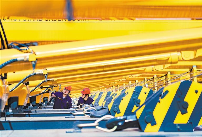 在习近平总书记考察过的徐工重型底盘装配车间,这里已经升级改造为数字化底盘装配检测生产线。今年3月份,我国自主研制的全球最大吨级、吊装能力最强、全球首款11桥徐工4000吨轮式起重机完成首吊。2023年,徐州跃居全国先进制造业百强市第22位。徐州市装备制造(工程机械)示范基地连续多年入选国家五星级新型工业化示范基地。