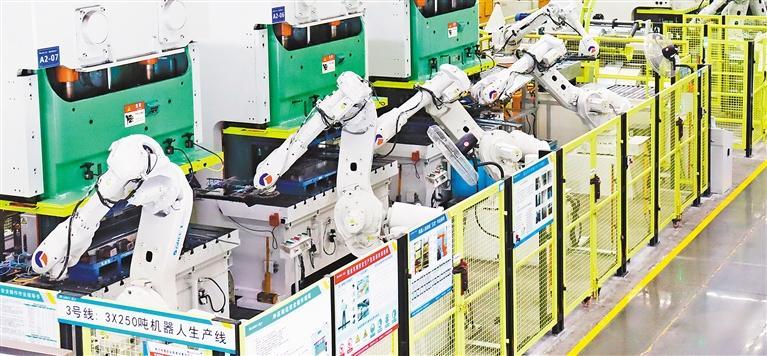格力电器钣金车间机器人生产线。周龙增摄(中经视觉)