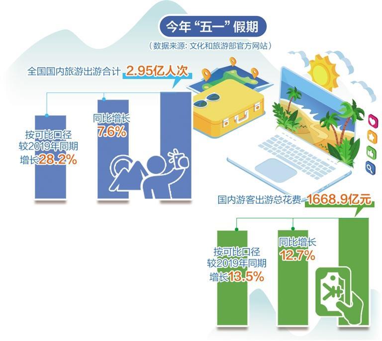 “五一”假期,北京、上海、杭州、成都、西安等传统旅游城市依旧热门,一批三四线城市和县域小城也大放异彩。“韩国平替”延吉,“东南亚平替”芒市,拥有小机场的保山、怀化、赤峰、和田等地,旅游热度明显上升。年轻人是出游主力军,银发族、亲子家庭同样闲不住。统计显示,有10.5%的农村居民出游,农村居民出游人次已占节假日国内游客出游人次的16.9%。