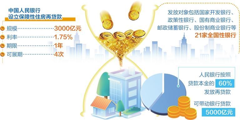 据介绍,作为新创设的结构性货币政策工具,保障性住房再贷款按照“政府主导、市场化运作”的思路,由人民银行提供低成本再贷款资金,激励21家全国性银行机构按照市场化原则,向城市政府选定的地方国有企业发放贷款,支持以合理价格收购已建成未出售商品房用作保障性住房。