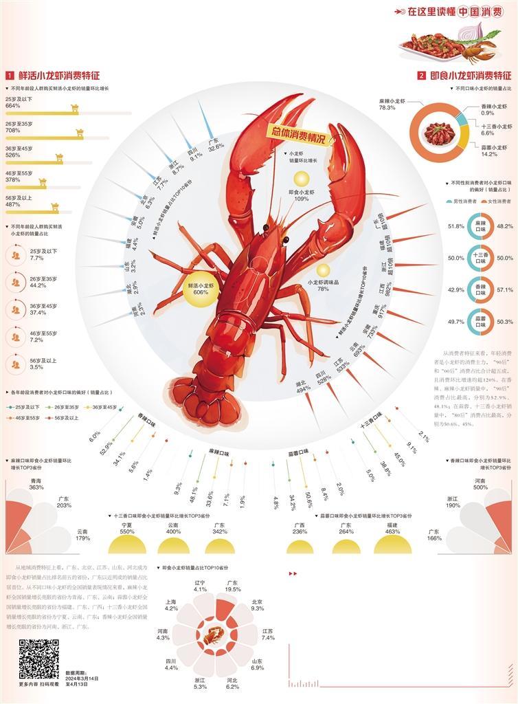 进入初夏,备受消费者喜爱的小龙虾开始大量上市。数据显示,近一个月以来,小龙虾产品销售呈现稳步攀升态势,鲜活小龙虾销量环比增长超6倍,预制小龙虾、小龙虾调味品的销量也显著增长。受天气提前回暖、小龙虾产量增长、养殖规模扩大的影响,今年的小龙虾价格很亲民,相较去年同期及今年刚上市均下降了不少。